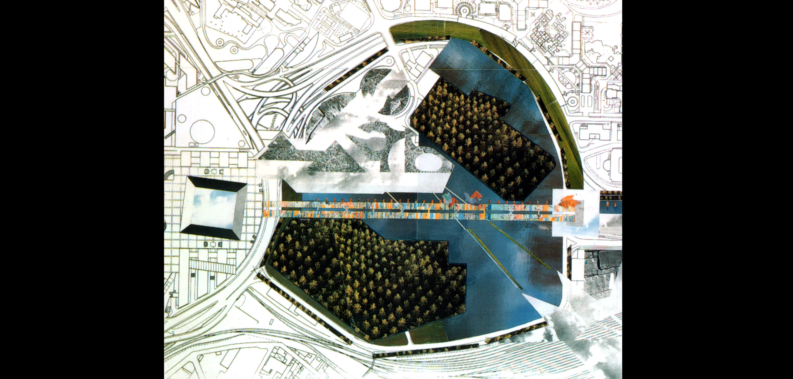 Après l'Arche, dans un chaos urbain de bureaux, de logements, d'infrastructures lancés pèle mêle au sol, notre démarche est identique. Nous révélons la trace évidente du territoire que nous rendons lisible et ordonné et qui, de la Grande Arche à la Seine devient paysage, devient Ville.