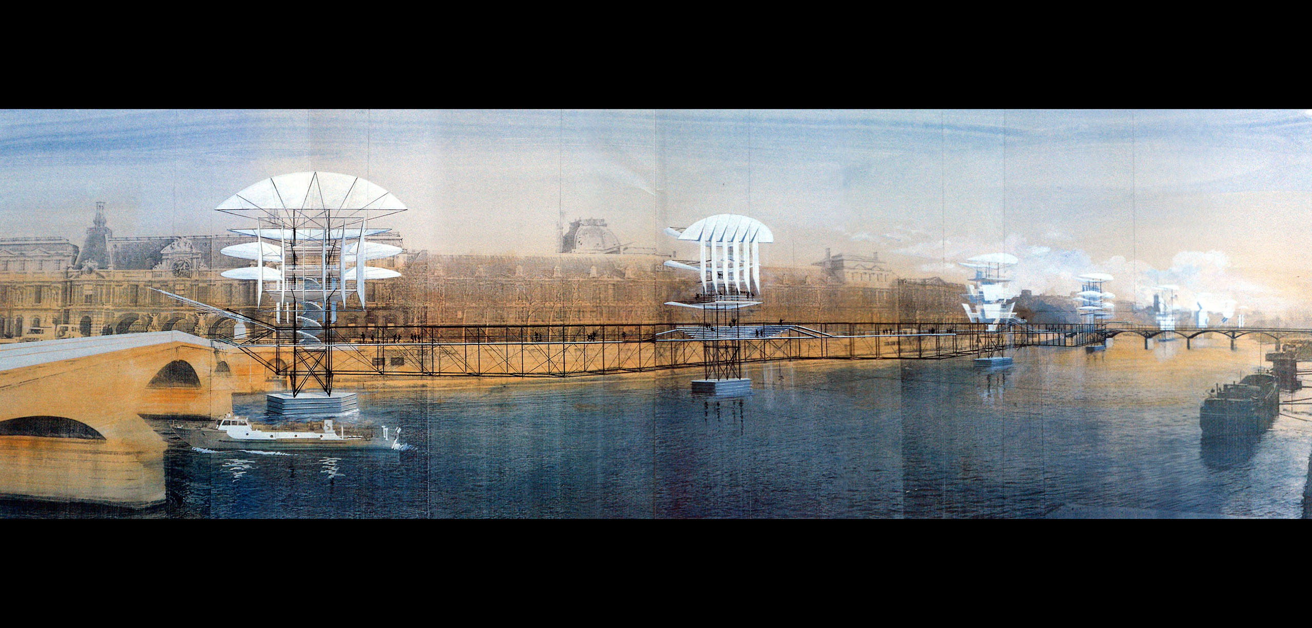 Cette étude de l'agence proposait une promenade d'un km survolant la Seine, passerelle reliant les ponts de Paris et ponctuées de Tours de la Liberté. Ce projet donnera naissance aux Tours de la Liberté réalisées au Louvre pour la célébration du bicentenaire de la Révolution Française.